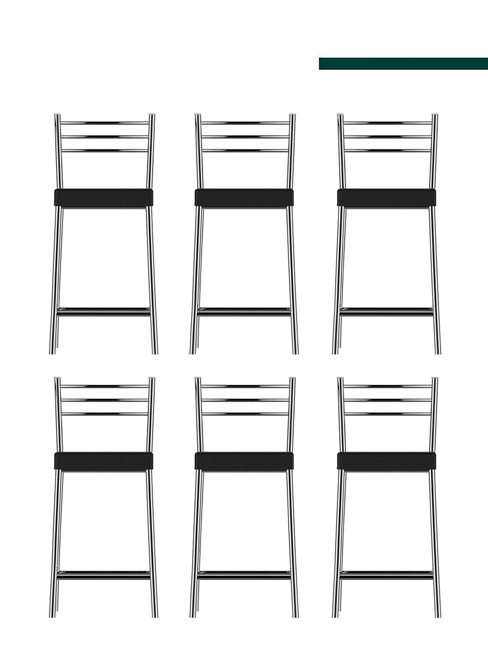 Banqueta Turim Baixa Cromada c/ Tampo Preto (6 unidades) - Flape