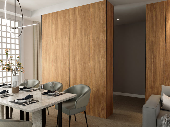 O Ecopanel na cor Jatobá faz parte da inovadora coleção Ecowood da Santa Luzia, composta por produtos como Ecodeck, Ecoripado, Ecobrise, Ecoforro e acessórios. Produzido em Wood-Plastic Composite (WPC), o revestimento redefine o design das paredes em ambientes internos, sendo ideal para quem busca unir estética, durabilidade e responsabilidade ambiental. Entre os diferenciais do Ecopanel estão a resistência à água, imunidade a insetos e fácil limpeza. As peças possuem 2,85 metros de comprimento e 40 centímetros de largura, garantindo praticidade e eficiência para o projeto.