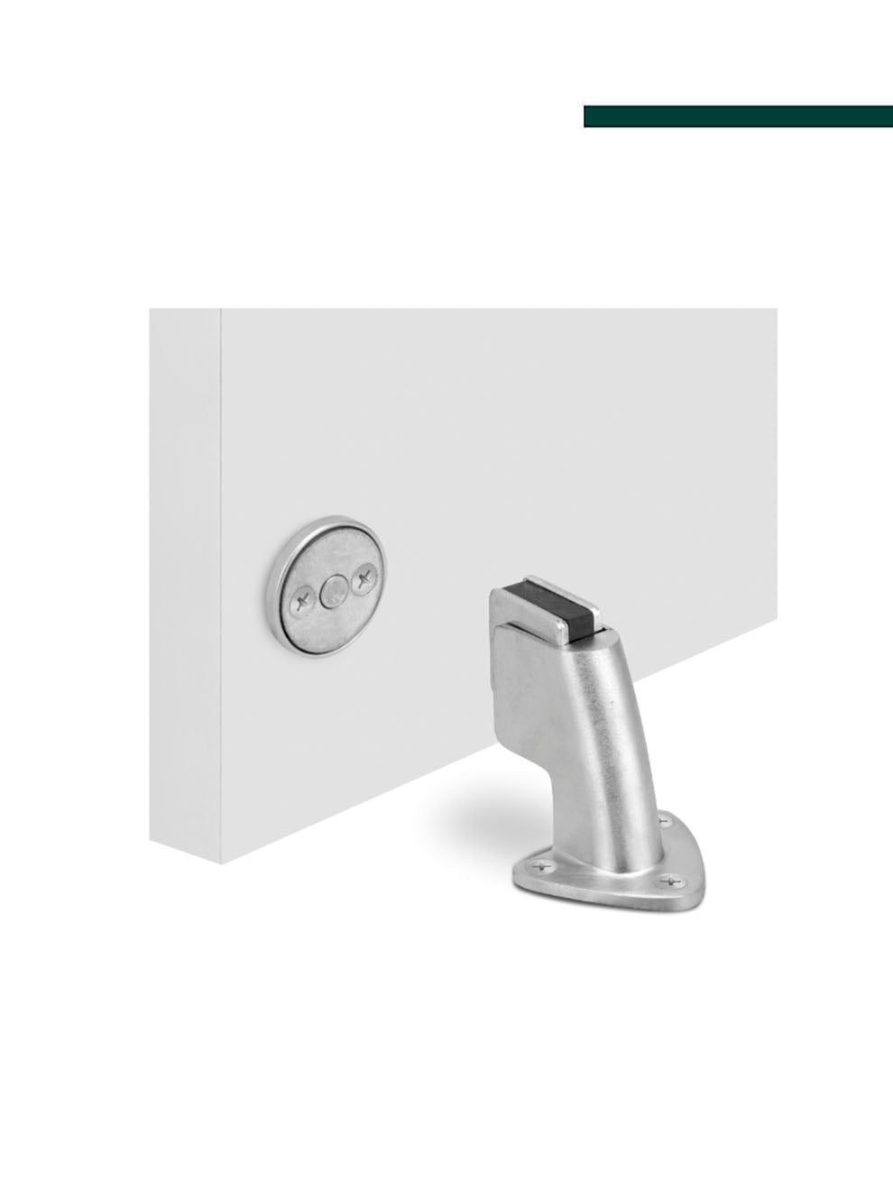PRENDEDOR MAGNÉTICO PARA PORTAS COM FIXAÇÃO NO PISO OU PAREDE. MATERIAL LATÃO E AÇO