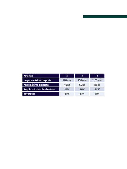 Largura máxima da porta: 850mm/950mm/1.100mm;